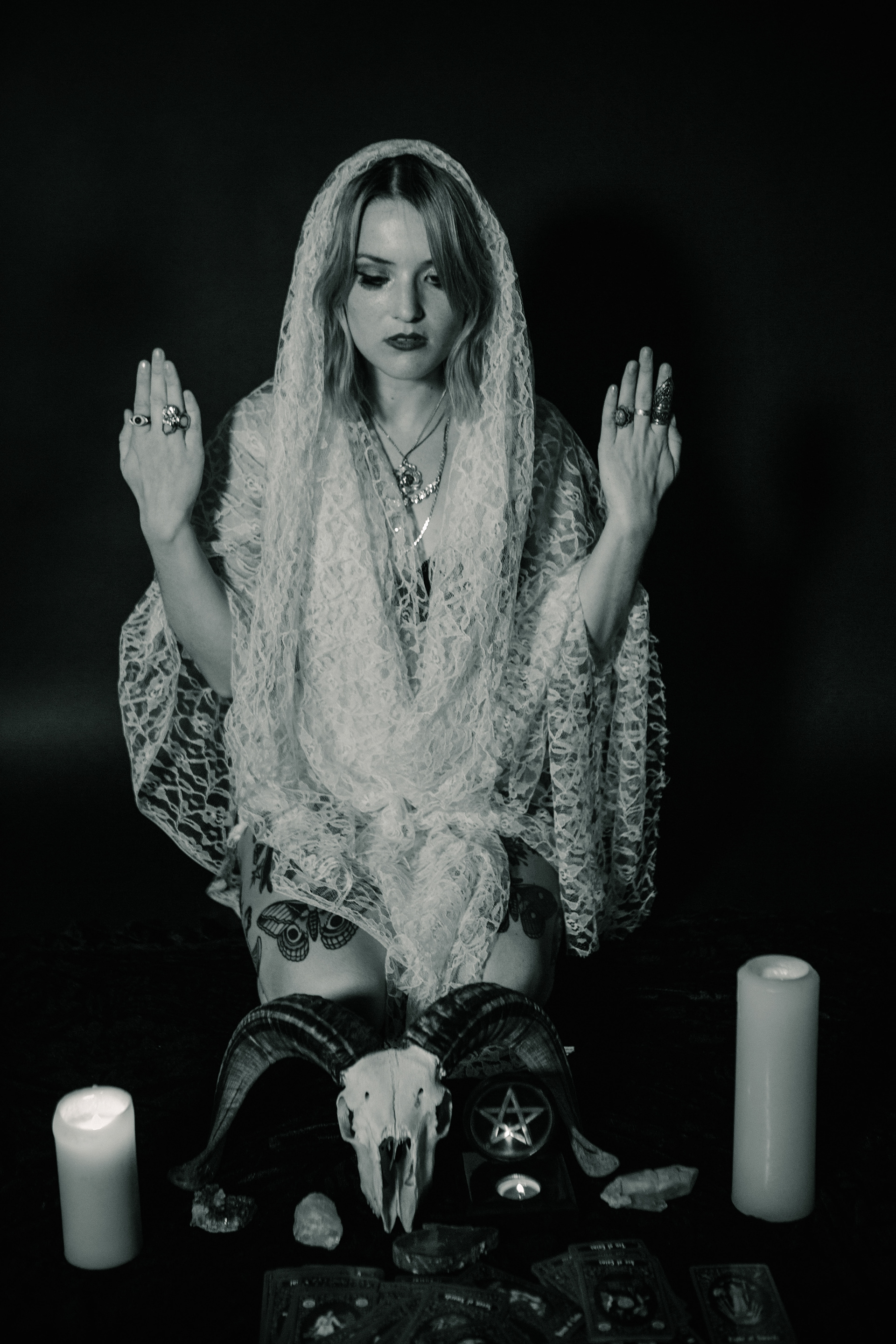Doing a quick photo-shoot with Vanessa in the studio. Emphasis on darkness, religion and magic.